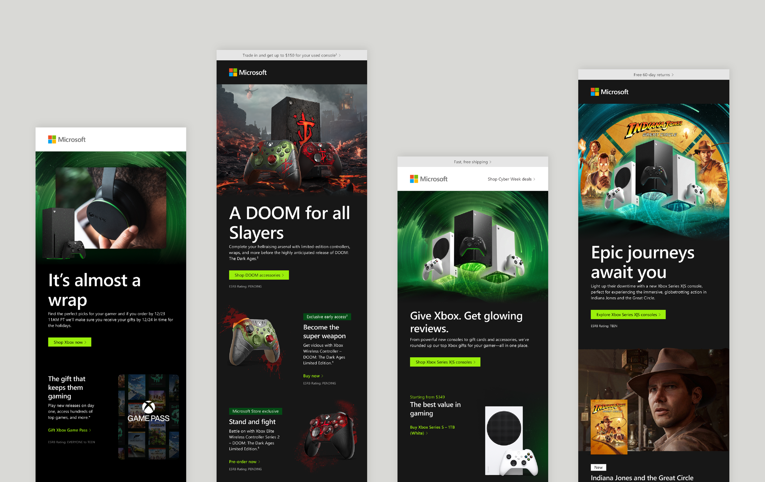 From product launches to big sale moments. BondX creates emails to entice clicks and drive revenue for Microsoft Store.